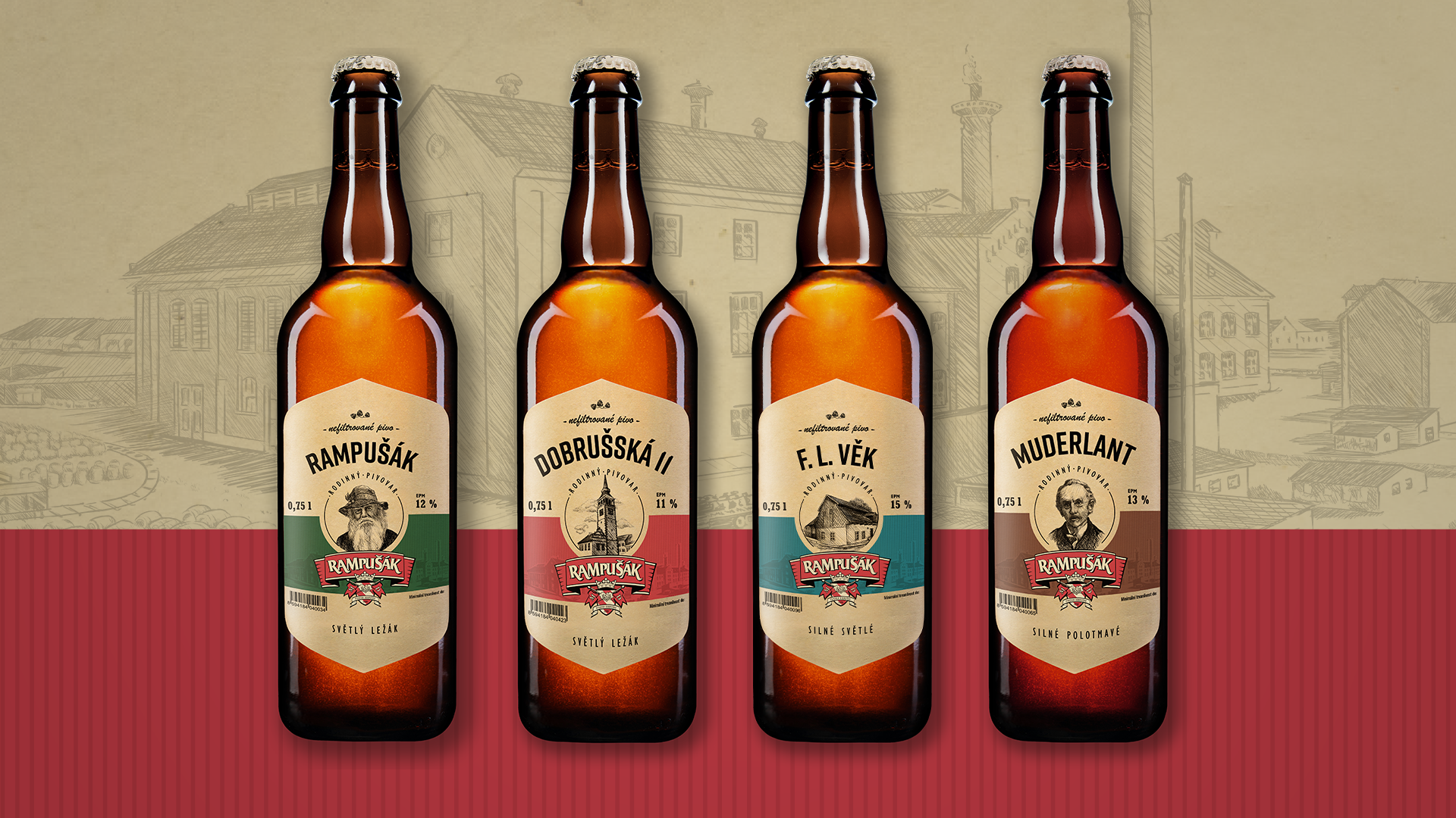 Pivovar Rampušák má hluboce zakořeněné tradiční hodnoty pivovarnické, rodinné i firemní. Ve firmě i v pivovaře je na každém kroku cítit poctivá práce. Proto i odraz tradice, letitosti a řemeslné práce byl hlavním zdrojem naší inspirace pro vytvoření návrhů etiket produktové řady piv.